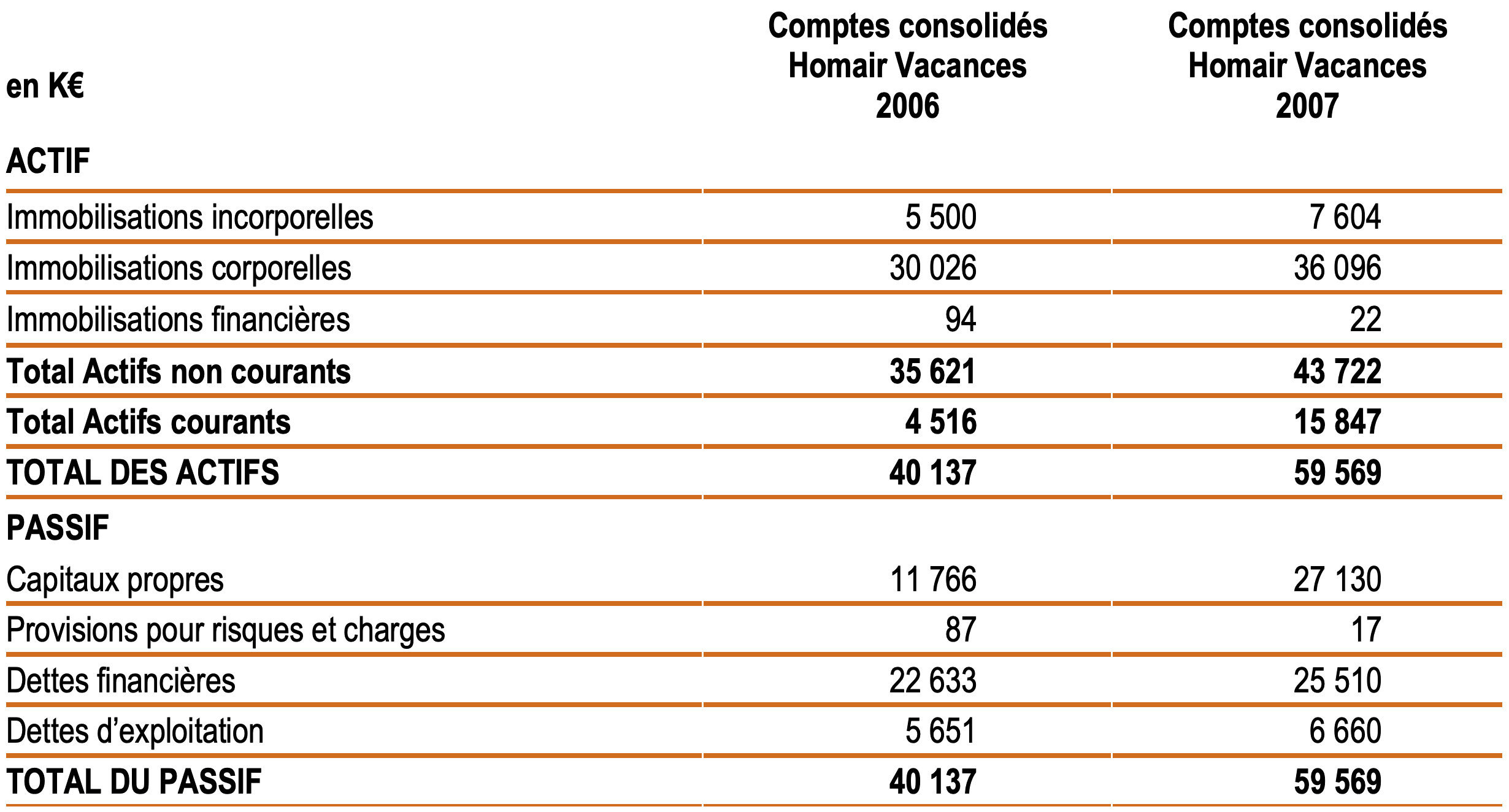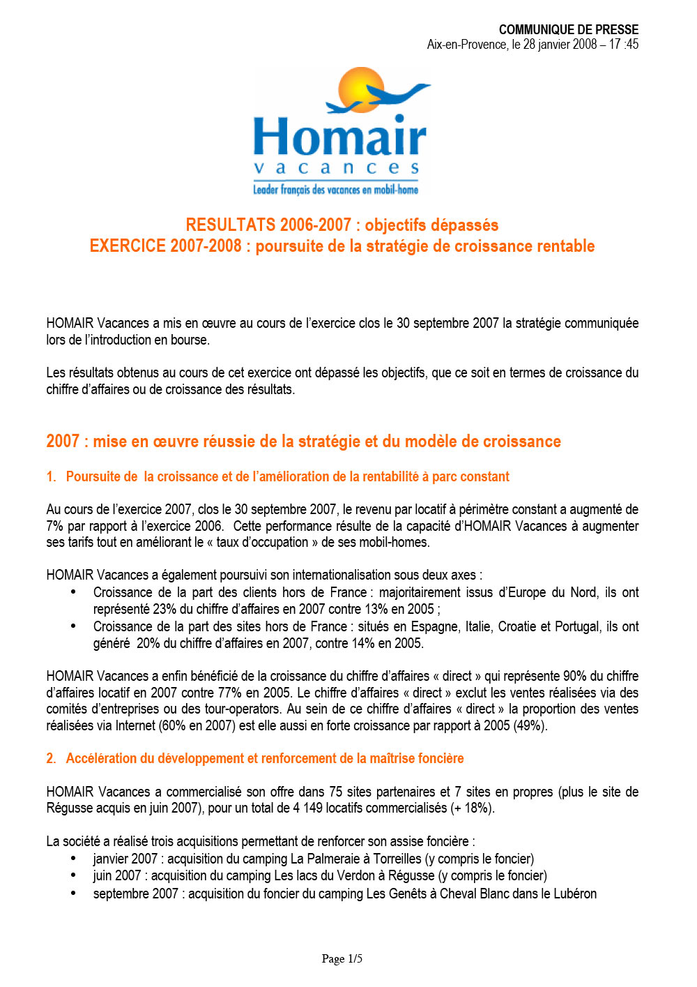 HOMAIR Vacances a mis en œuvre au cours de l’exercice clos le 30 septembre 2007 la stratégie communiquée lors de l’introduction en bourse.