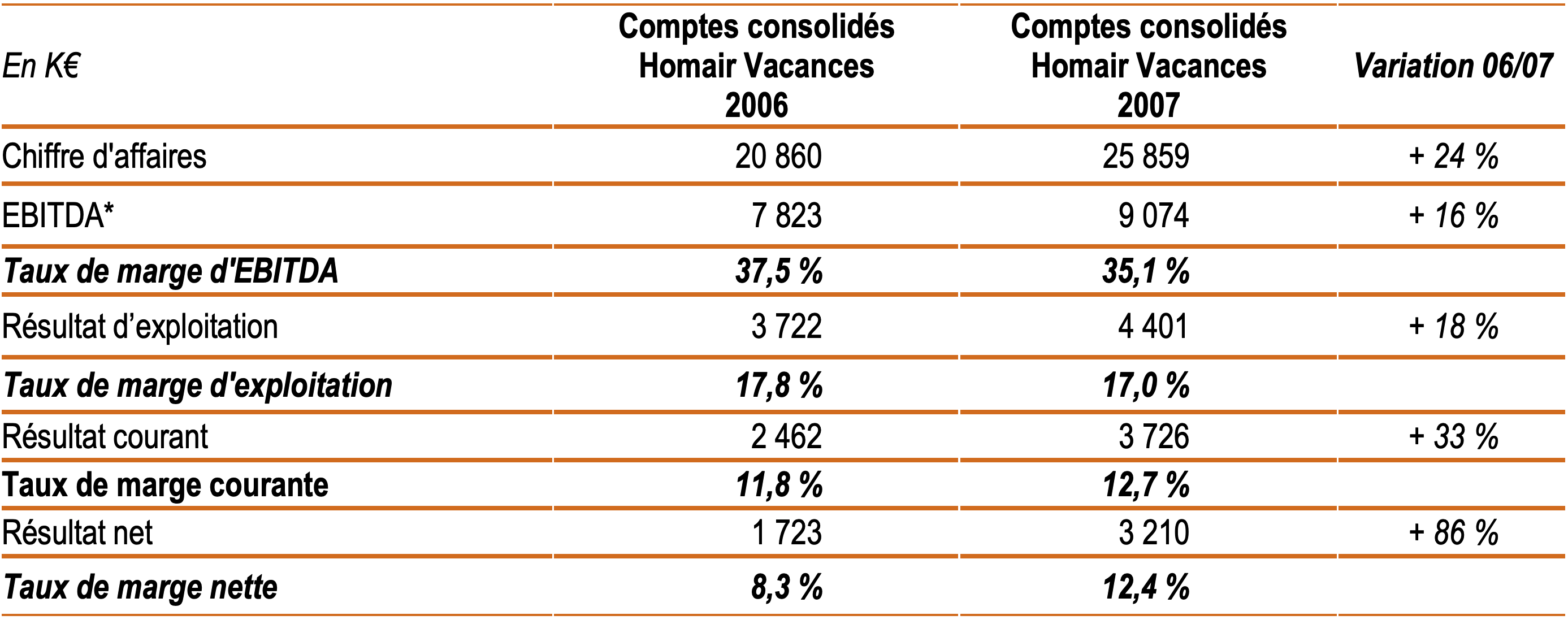 Pour 2008, HOMAIR Vacances vise une croissance du chiffre d’affaires à un rythme supérieur à 20%, accompagnée d’une nouvelle croissance significative de l’EBITDA et du résultat courant.